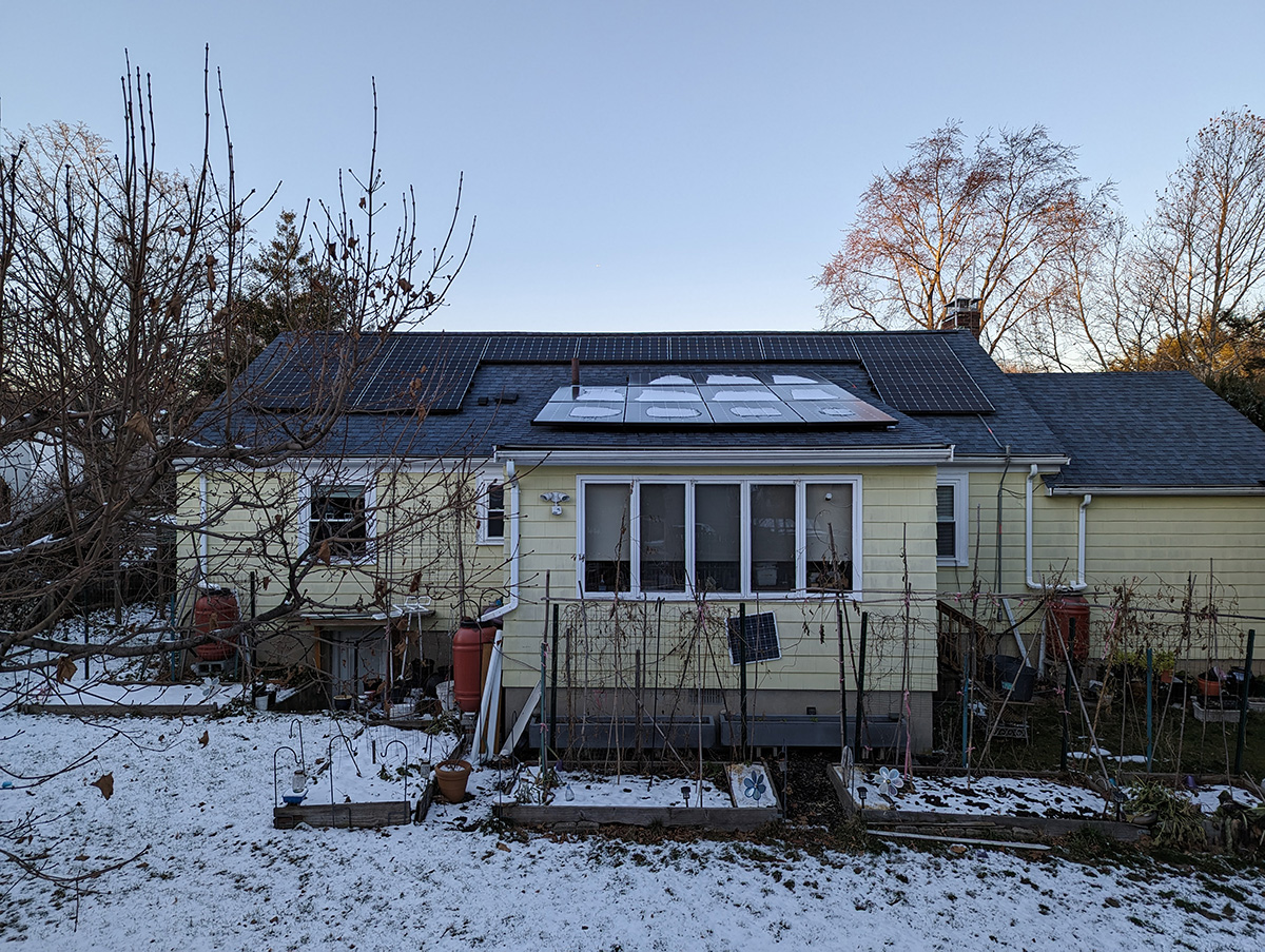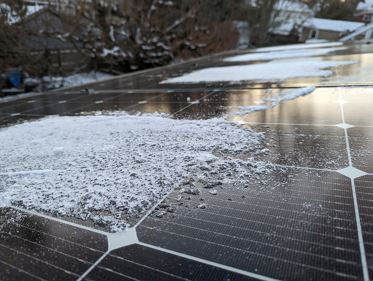 my mother had a load of laundry in the washer from this morning that she forgot to put in the dryer and finally put them in the dryer when she got back home. she waited until today to do laundry because it was sunny (free solar electricity), but didn't realize that our solar panels were still covered in snow from last night.