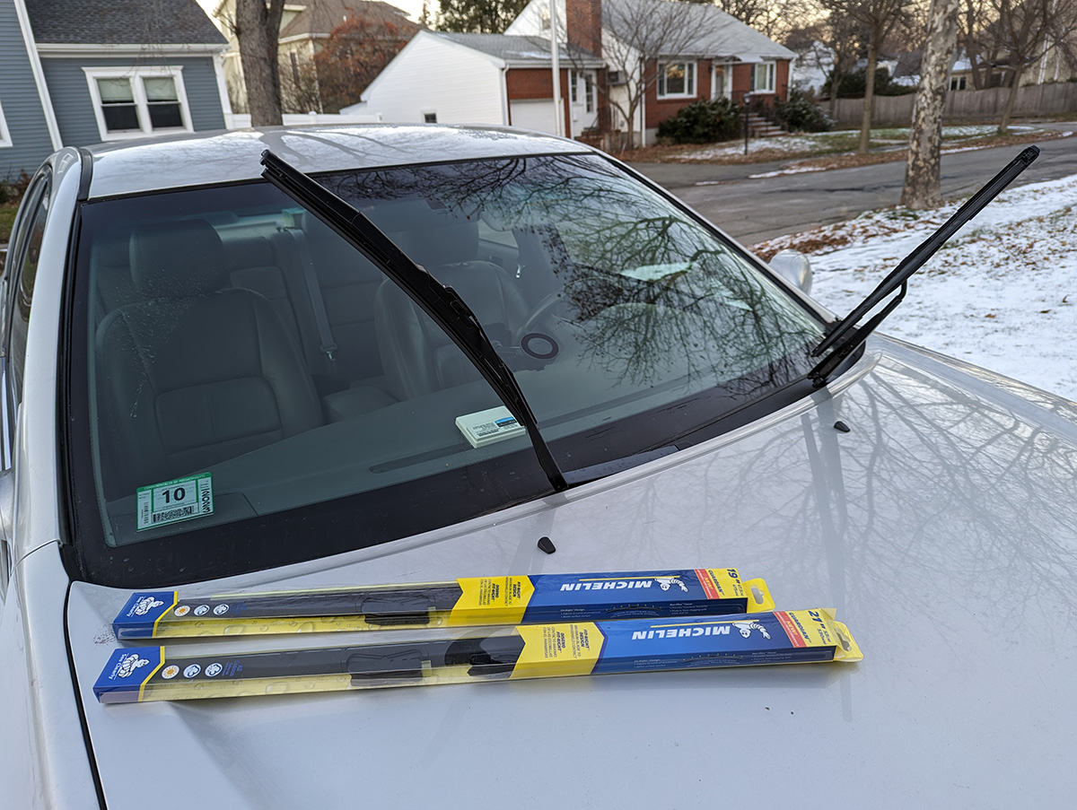 i replaced the windshield wipers on the toyota with new ones we got from costco last week. these were michelin-brand wipers, replaced old goodyear wipers. i looked up the specs before i got them, the website said 19" and 21" for this model of camry, but the new wipers seemed about an inch shorter than the old wipers. they still work though, now both cars have brand new wipers.