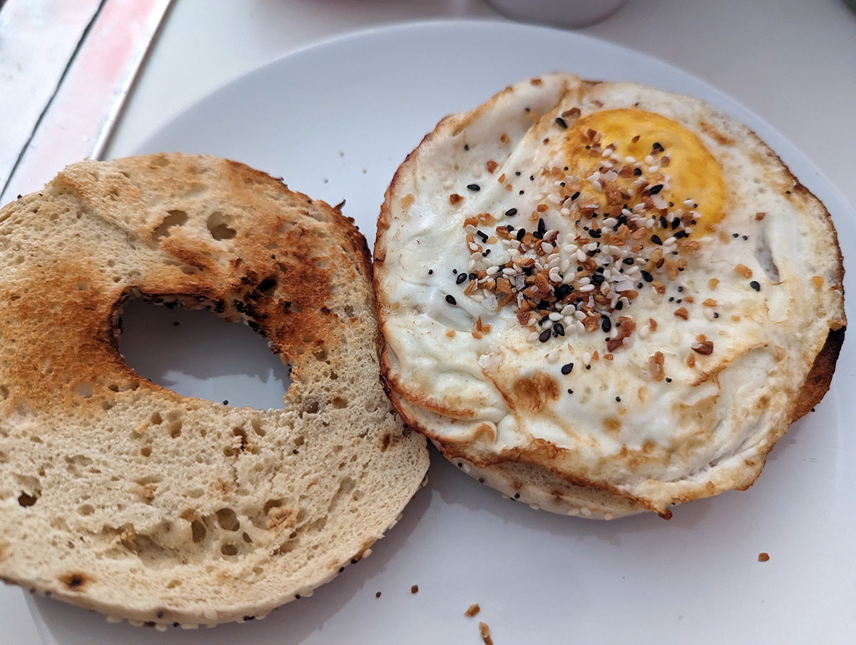 i made a kielbasa egg bagel sandwich for lunch. since i had plenty of milk, i also made a matcha latte, the one this season. there was a period last winter season where i drank one every morning, but when i went searching, i couldn't find the recipe, and i couldn't remember how i made it. so i improvised. i warmed up about a 2/3 glass of whole milk in the microwave for one minute. i dissolved the matcha powder (about 1-1/2 tsp) in a small amount of hot water first, using my electric milk frother. i then poured the dissolved matcha into the hot milk. i didn't have regular honey so i added a teaspoon of hot honey.