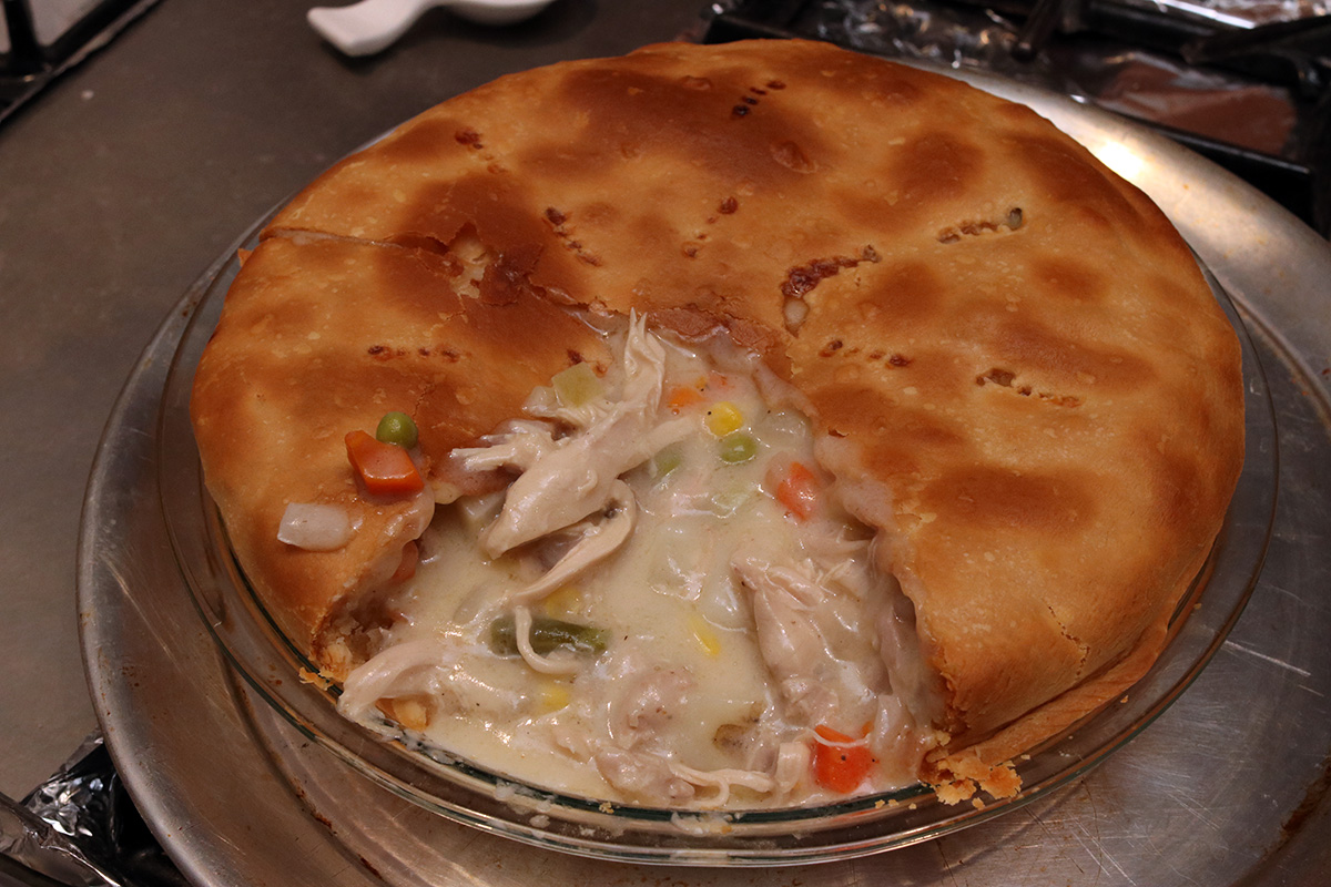 | preheat oven to 425°F. boil chicken breast, frozen vegetables, and potato for 15 minutes. while that's happening, prepare the pie filling: melt 5 tbsp of butter with onion, then add flour to thicken. add broth and milk gradually to mixture, to keep hot. add salt and pepper to taste. drain boiled chicken and vegetables. remove chicken and shred. add chicken and vegetables to filling. pour filling into pie crust, cover with 2nd pie crust. poke holes on crust with fork. bake for 40 minutes. | |