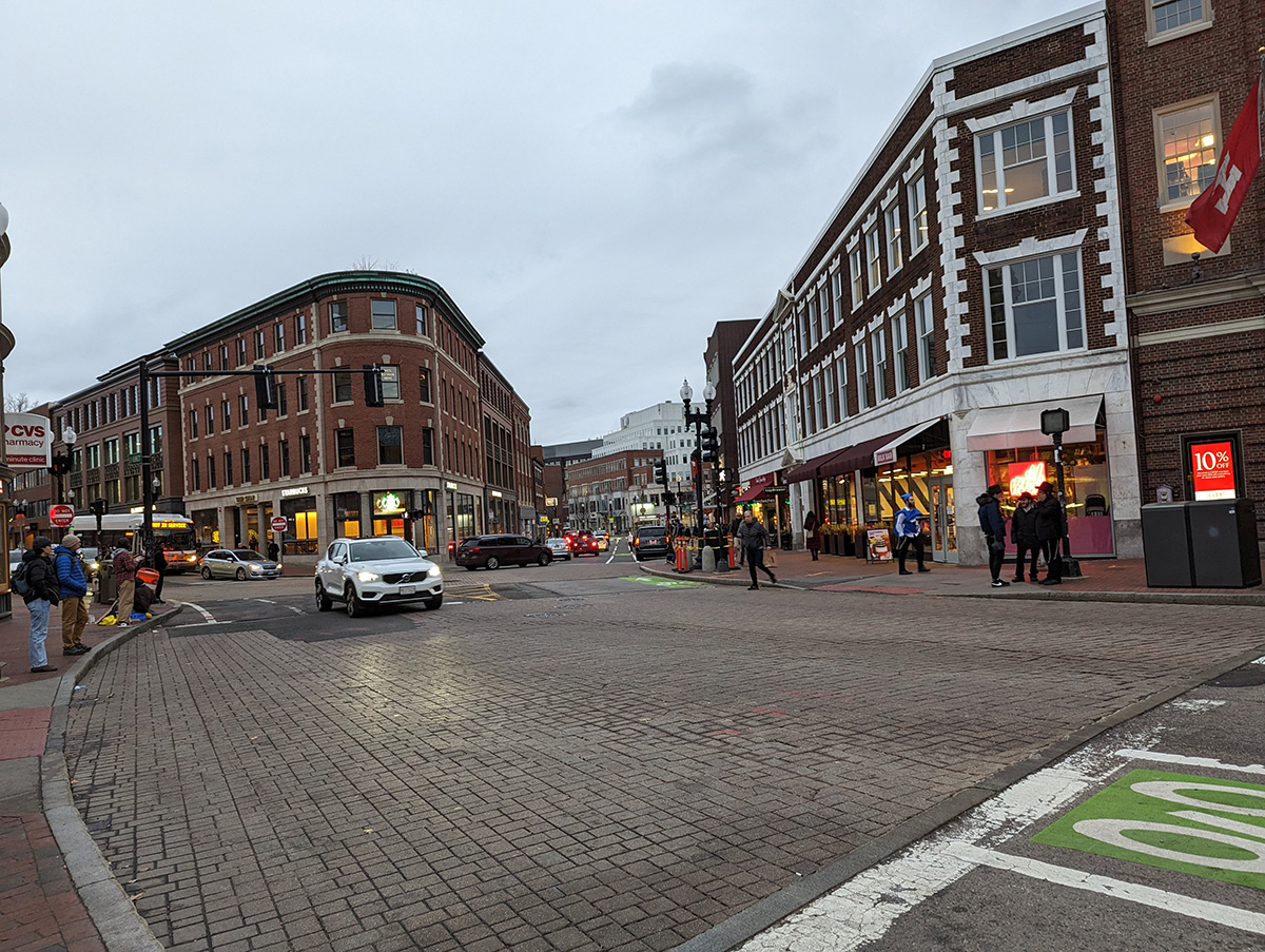 it took us 14 minutes to get to harvard square. from there i walked home. it actually took me longer to walk home than it did to ride the bus. it was already starting to get a little dusky.