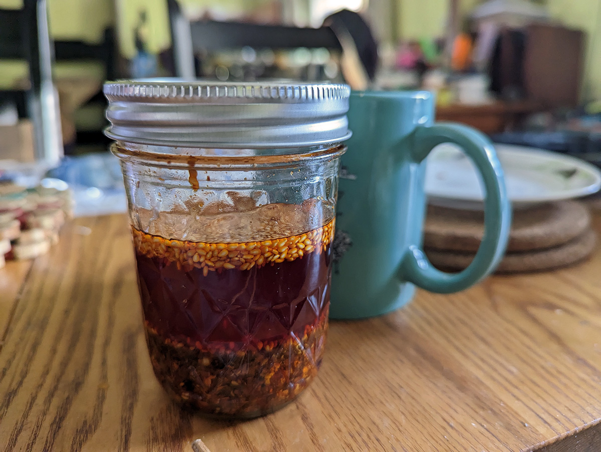 hailey was in belmont, i let her outside to use the bathroom before i came back inside for lunch in the form of leftover homemade dumplings. i used some of my chili oil, which i now think isn't that good. yes, it's fragrant, but it's not spicy at all, and i made chili oil because i want it to be hot. i grabbed a can of seltzer from the sunroom, and was surprised when i tasted some thin shards of ice crystals inside the can. the sunroom isn't that cold - about 48 degrees - but it does feel like a walk-in freezer.