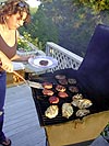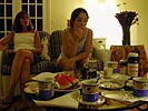 for dinner we had beef and turkey burgers, corn on the cob, and ziti. we all retired inside, and while john and deanna went out to buy some coffee, the rest of us had watermelon. it was interesting to hear these new yorkers talk about their post 9/11 lives. the topic was a little morose but before it could bring everyone down, john and deanna came back with the goods, and we all had coffee and cake for dessert. the big discussion this weekend was composing a top 5 list of sexiest actors/actresses. as the evening winded down to a close, erin left the party to drive back home. while everyone huddled in the tv room watching a saturday night live repeat (josh hartnett with musical guest pink),