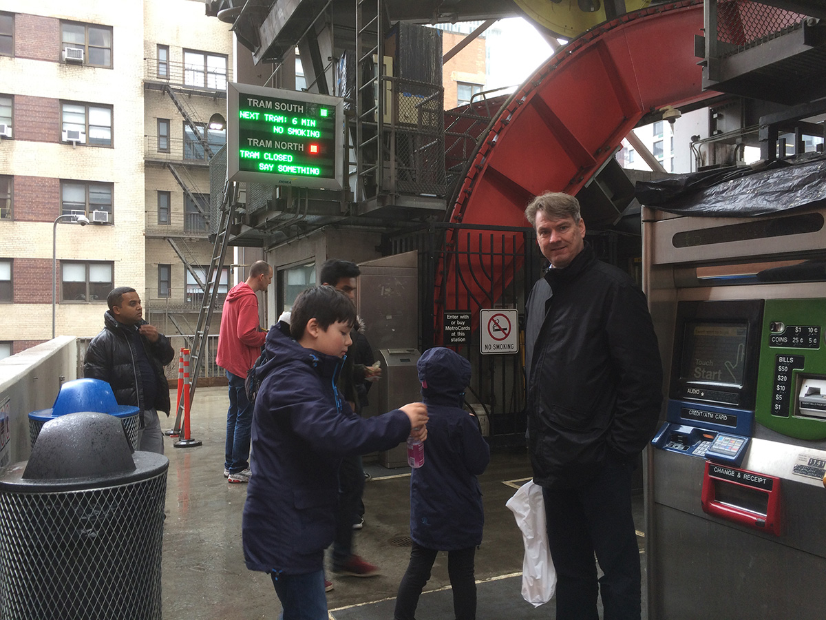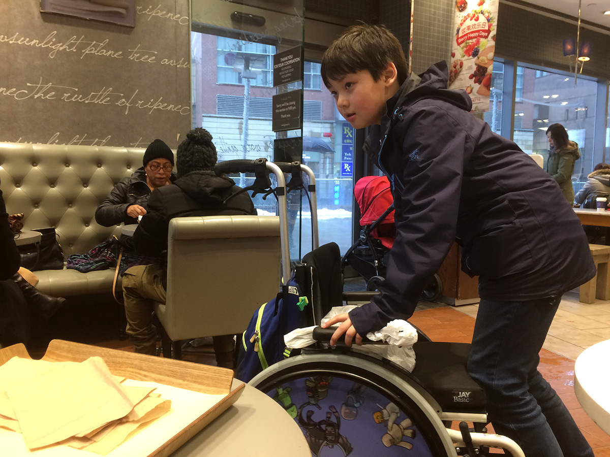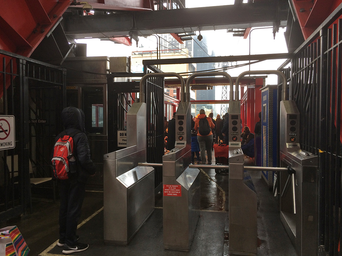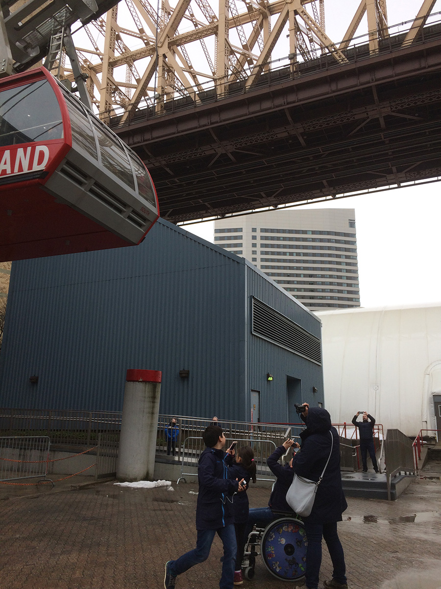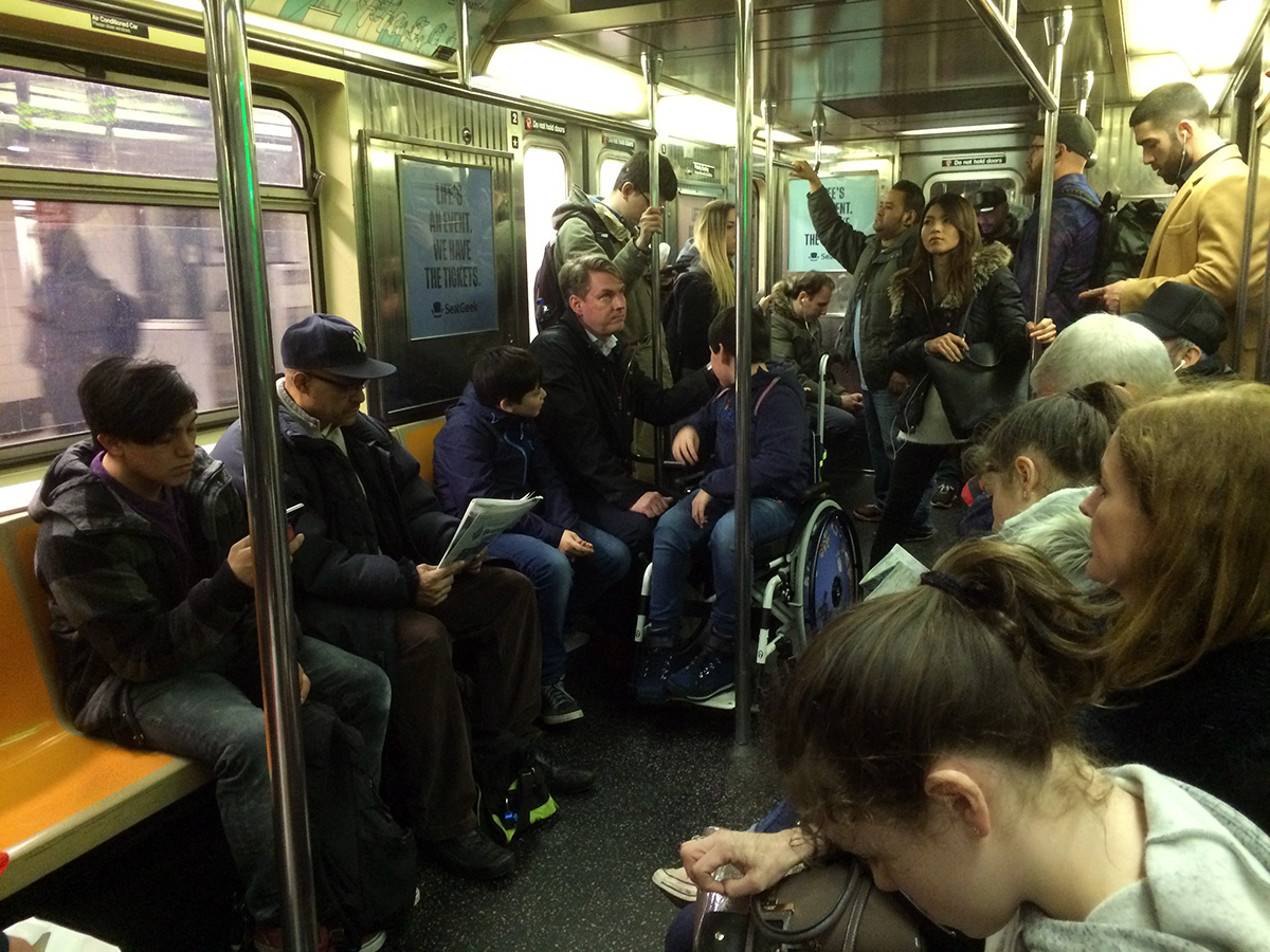 we then continued to the subway. one advantages of having a wheelchair is the ability to use the emergency swing doors. and often times, the whole family goes through, including me as well, for the price of a single admission, or occasionally free. i was looking to find an elevator when hans miraculously got out of his chair to walk down the stairs while fredrik carried his wheelchair. that's when frances told me that hans can walk for short distances, but his hurt legs hurt if he goes too long. we took a 2 train one station uptown to time square before switching to the 7 train. we then settled back for the 40 minute ride to the flushing, the last stop.