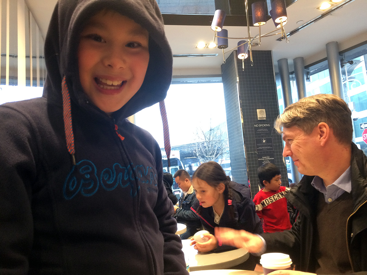 at 9:47am frances texted me to ask where the megabus stop was. the bus was scheduled to arrive at 10:15am, but i was still about 40 minutes away at least. frances said it wasn't a problem, that they would simply wait across the street at a pret a manger coffee shop. it ended up taking more than an hour, most of that time spent traversing manhattan north to south. the constant stopping and going once again made me a little carsick not too mention i was very hungry by that point. plus the hairy european bro sitting in front of me had really strong body odor. we finally arrived at 11am. from the bus window i spotted frances and her family.